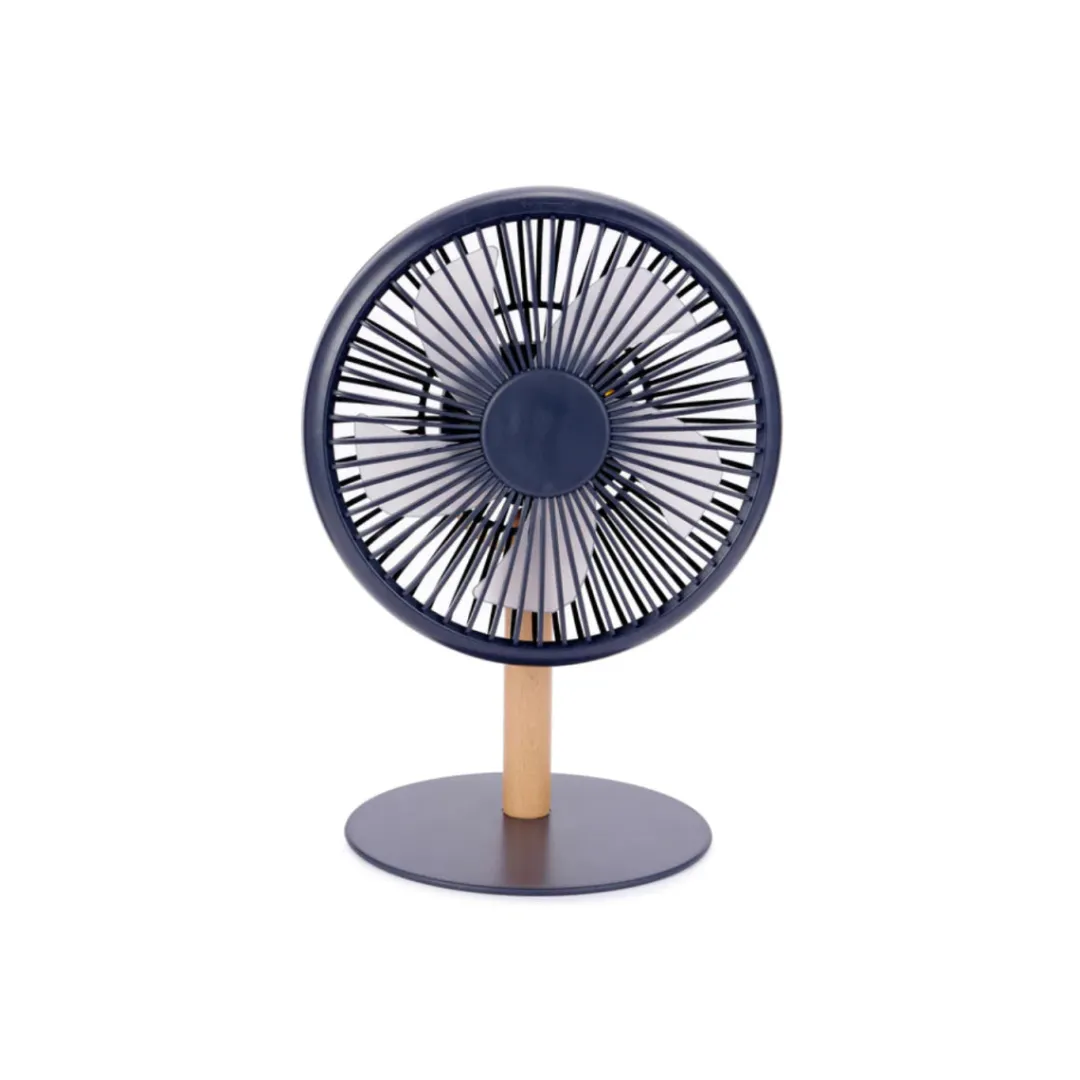 This sleek fan has a flat, round, ultra-thin base and a smart cylinder stand made with sustainable, natural wood. The five-blade design ensures high speed, noiseless operation, and an aesthetic design.