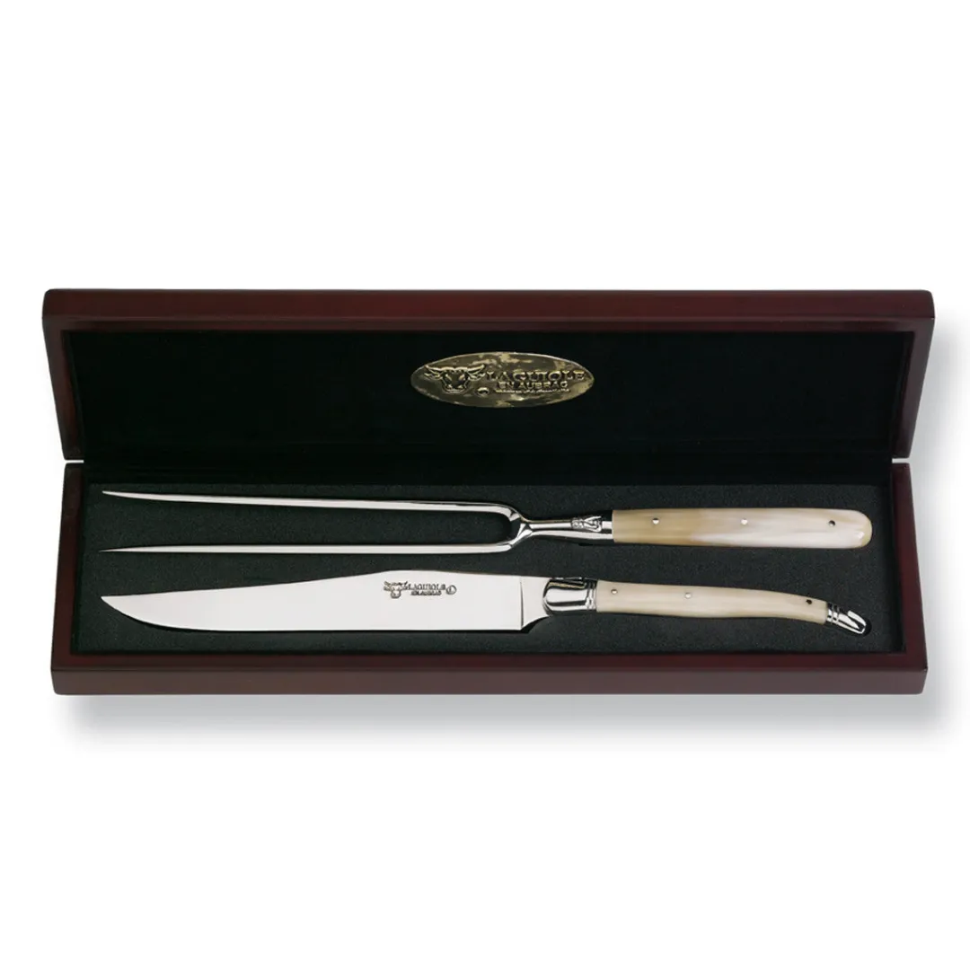 Packaged in a wooden storage case, this showpiece Chef’s Set makes an impressive presentation for carving meats at the table.