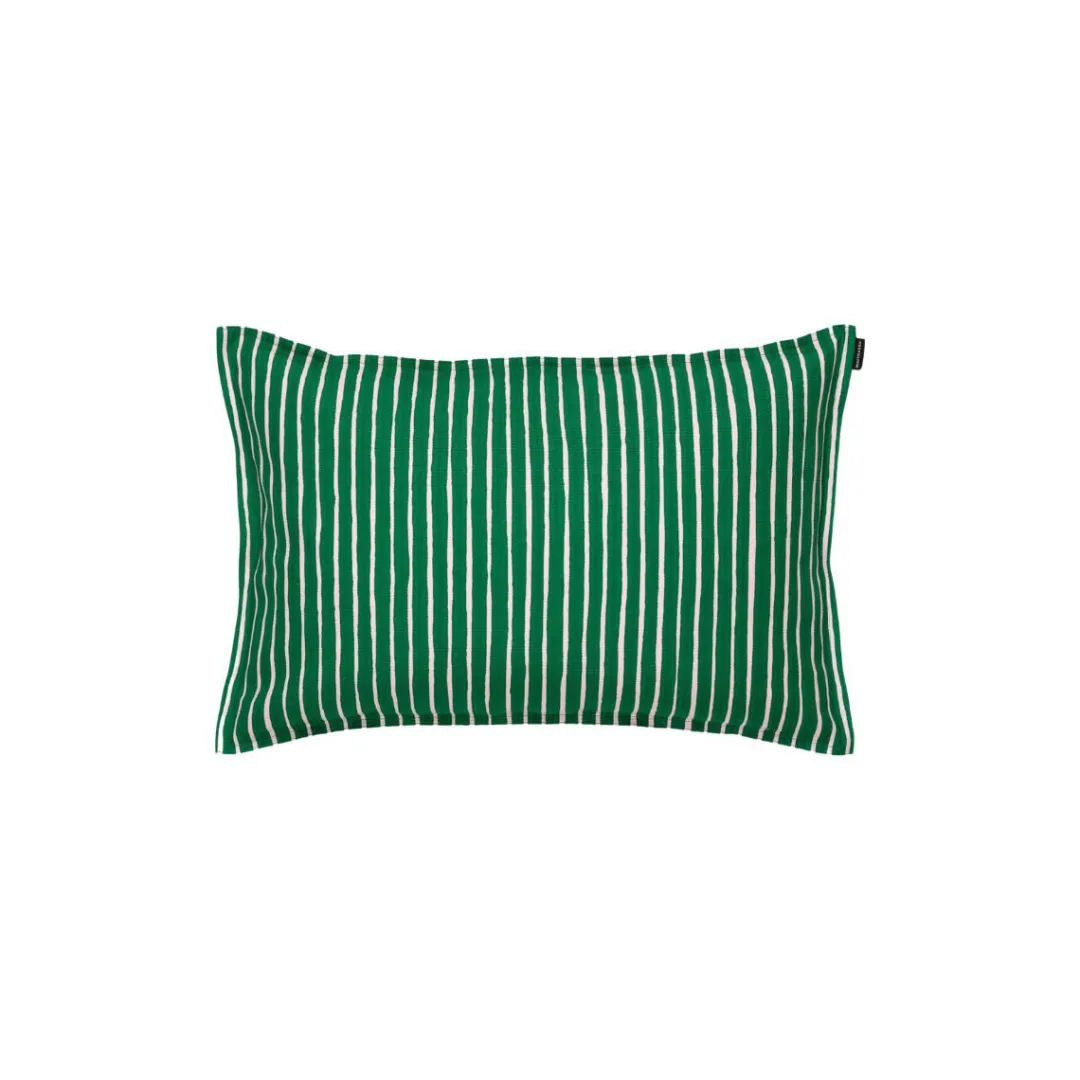 The Piccolo pattern cushion cover is made of organic cotton canvas, and it is printed in Helsinki. The cover has a zipper on one side and a narrow, flanged edge.