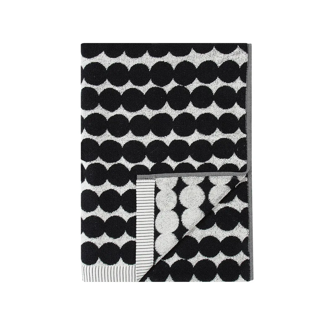 The bold, graphic Räsymatto pattern adorns this soft bath towel.