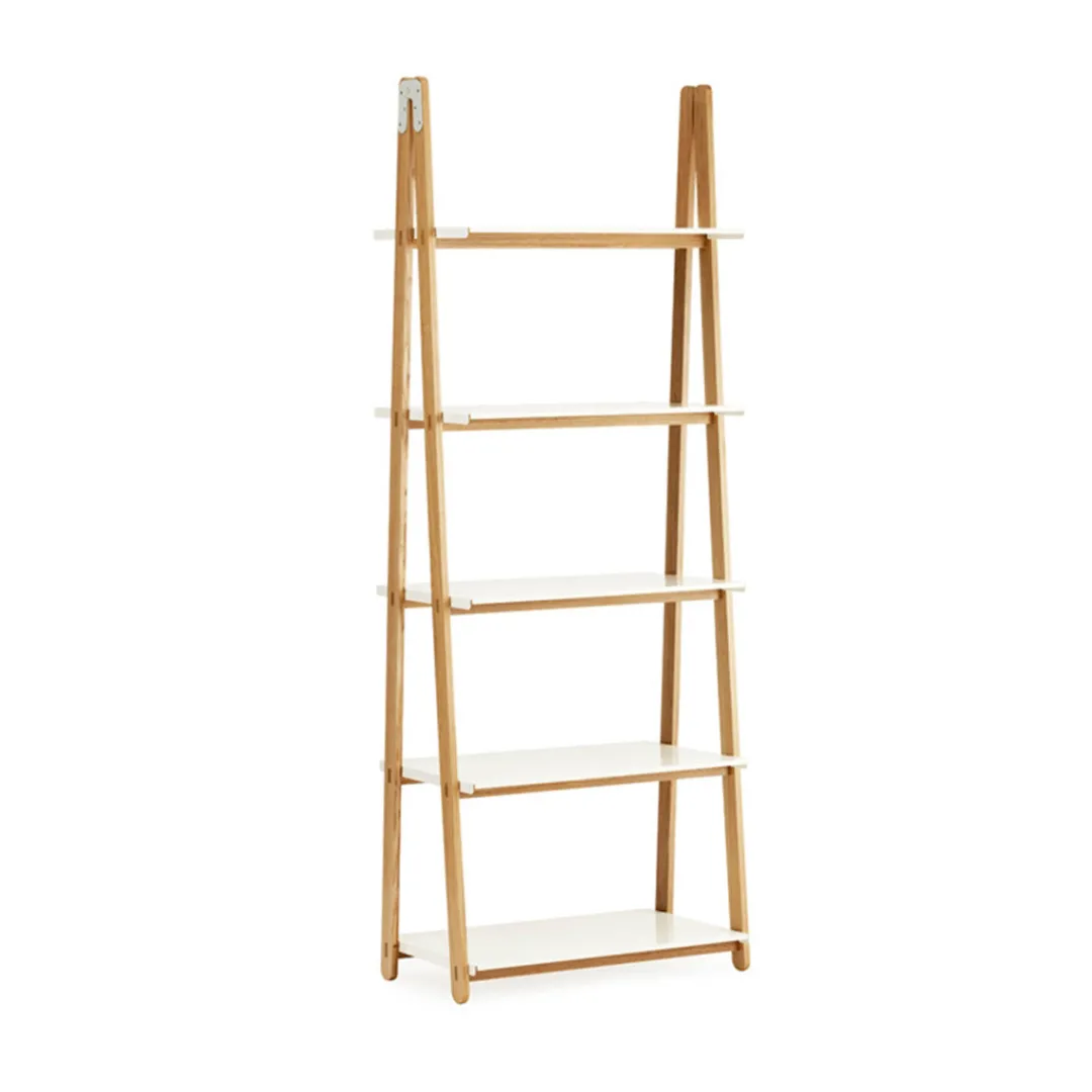 One Step Up creates room and frame for storage. Place various One Step Up bookcases beside each other and create your own bookcase system. One Step Up bookcase can also be used as a light room divider.