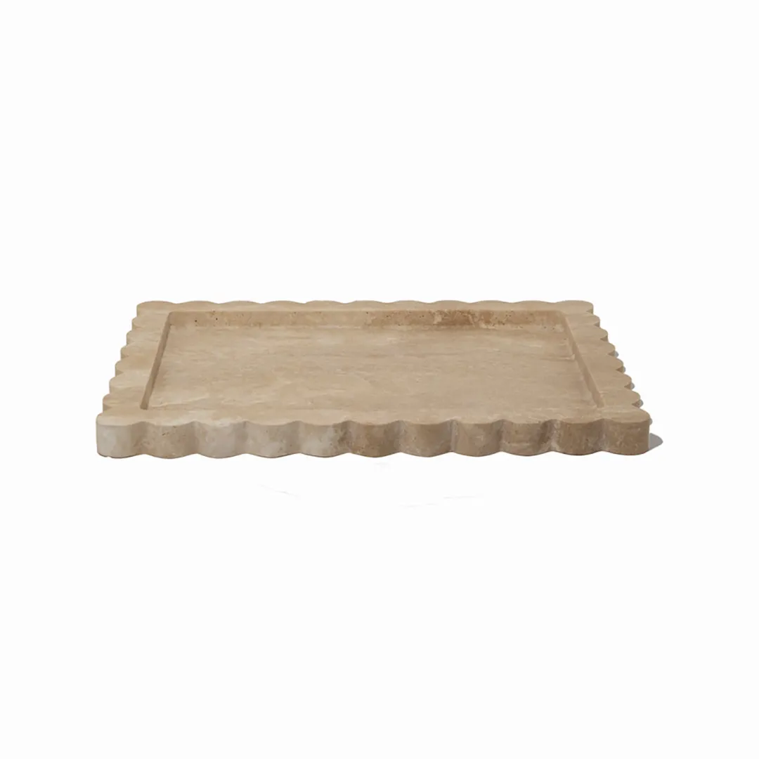 The Palazzo Scalloped Tray in the gorgeous organic travertine, is designed to elevate your surroundings with a touch of luxury. Inspired by the intricate beauty of palatial architecture, this exquisite piece draws the eye.