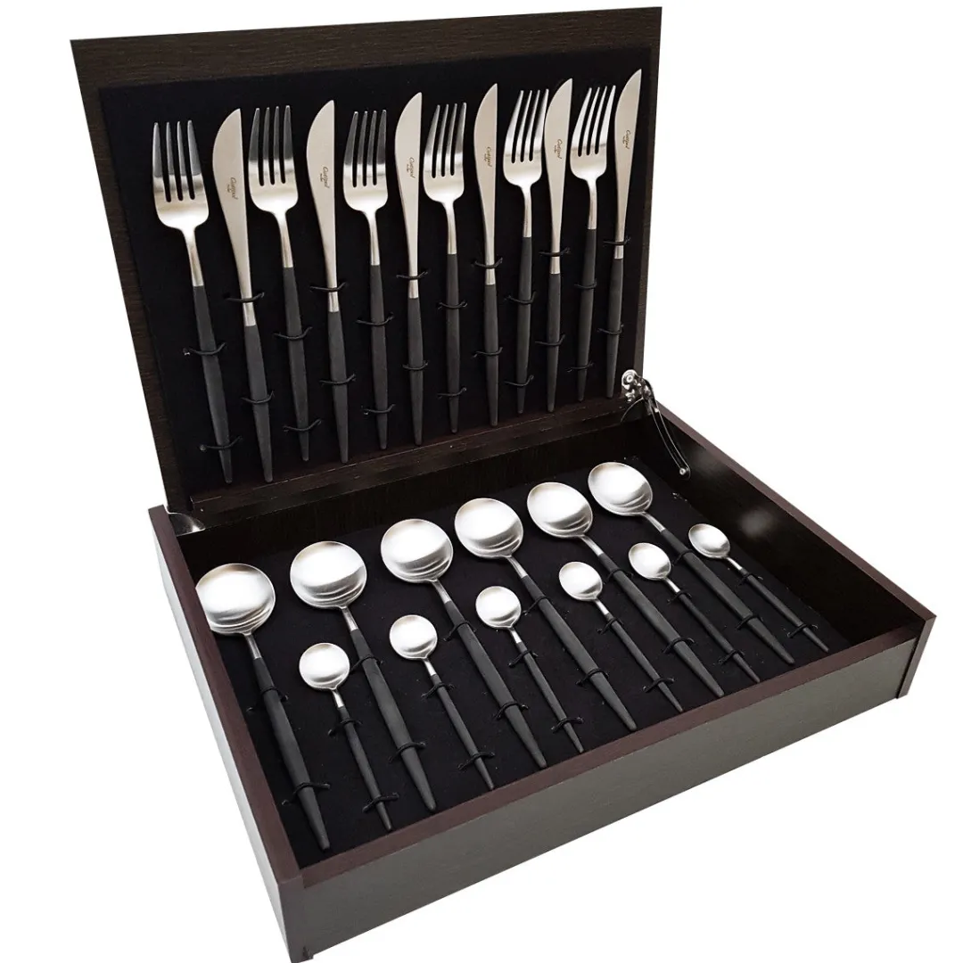 Store and display your gorgeous 24 pc Cutipol set in this wooden purpose-made Cutipol cutlery canteen! Both attractive and simple in design, this presentation box features a soft fabric interior and elasticated loops which keep your individual pieces in place and free from movement.
