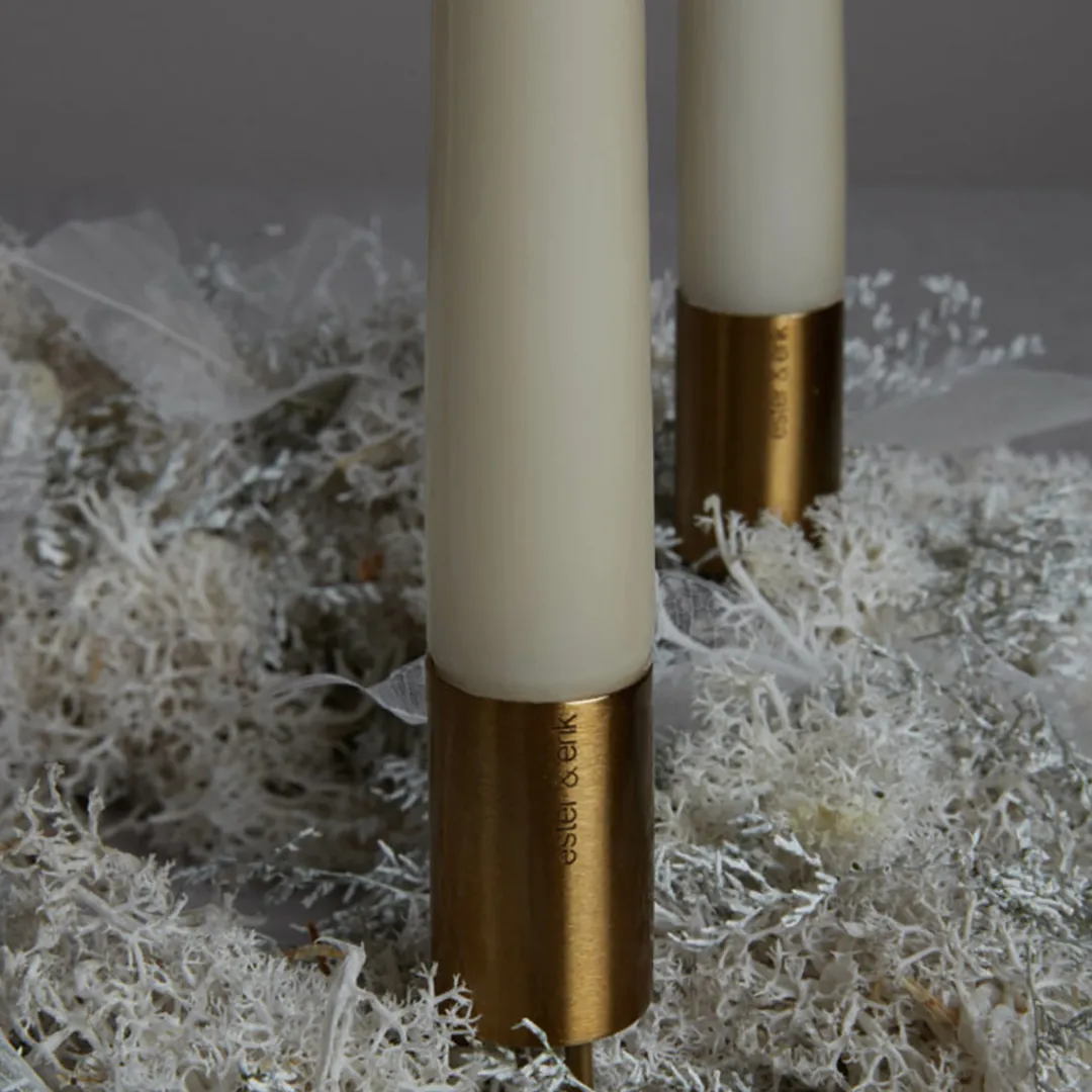 The design is simple and elegant with a discreet ester & erik logo. Size medium holds taper candles.