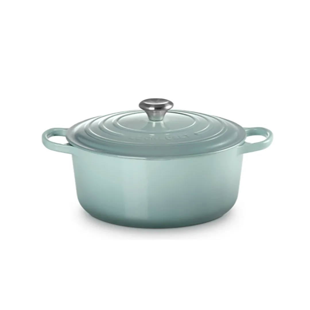 The Signature features of the round casserole, which include easy-grip, 45% larger handles, enhanced tight-fitting lid, toughened, easy-to-clean enamel interior, and a stylish, heat resistant stainless steel knob, combine the best of the kitchen classic with the latest innovations in comfort and functionality.