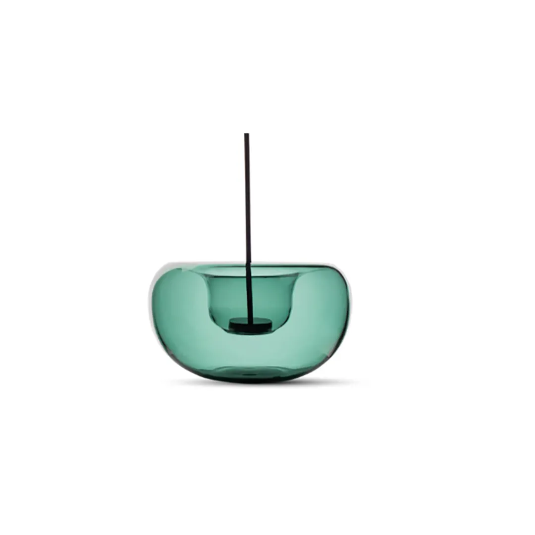 Made from translucent teal borosilicate glass, the Orbit Incense Holder’s organic form plays with light to create a striking decor object. Its hollow can fit tealight candles as well as incense sticks with the included aluminium incense holder.