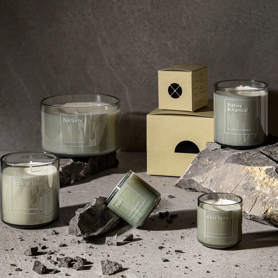 Native blooms collected by hand. Oils from branches, leaves and blossoms pepper the air and kiss the skin. Sculptural, fresh and bright. Let the intoxicating scents of Australia’s wildest regions slowly unfurl around you with Studio Milligram’s Native Botanical Scented Candle.